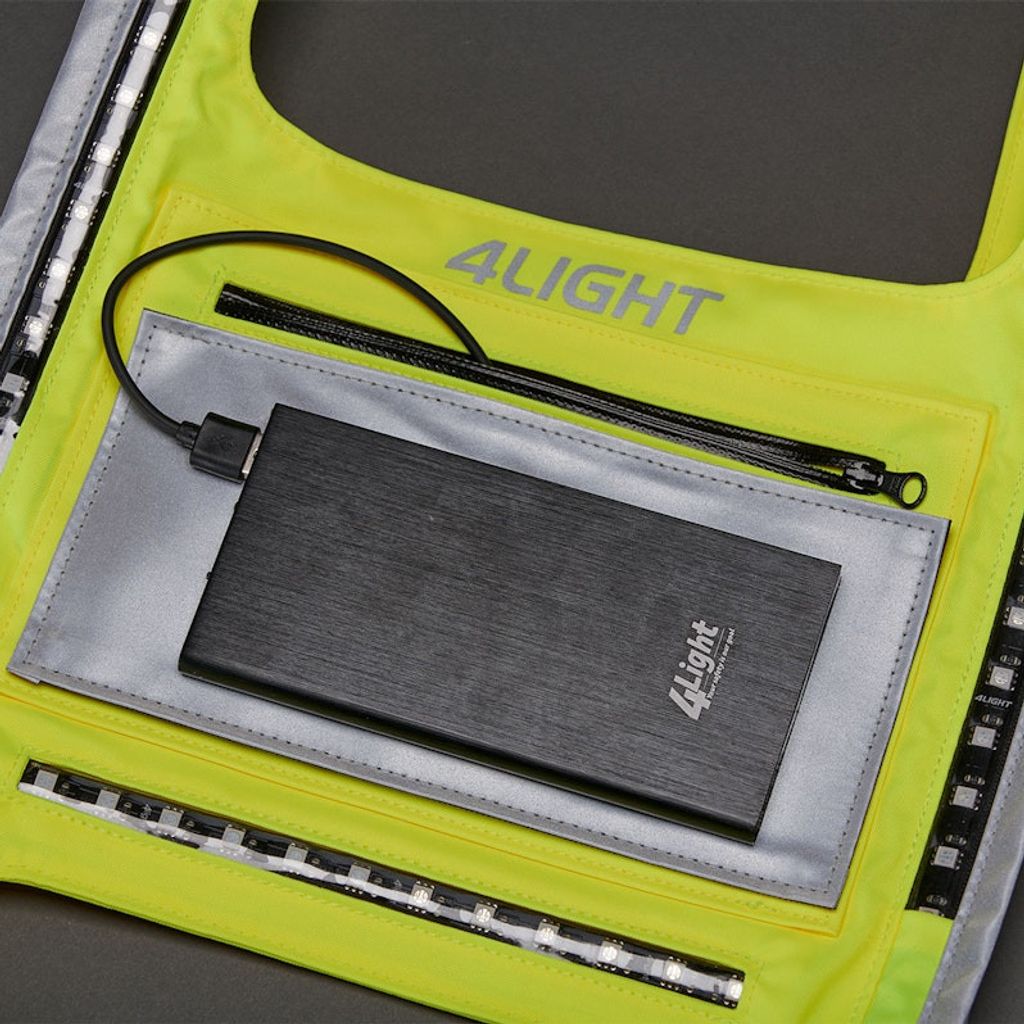 Selen har vitt ljus över bröst, axlar & rygg i fyra styrkor. Upp till 15h drifttid. Tål maskintvätt, men elektroniken behöver avlägsnas innan tvätt. Powerbank & drybag ingår. Denna modell är onesize och unisex.