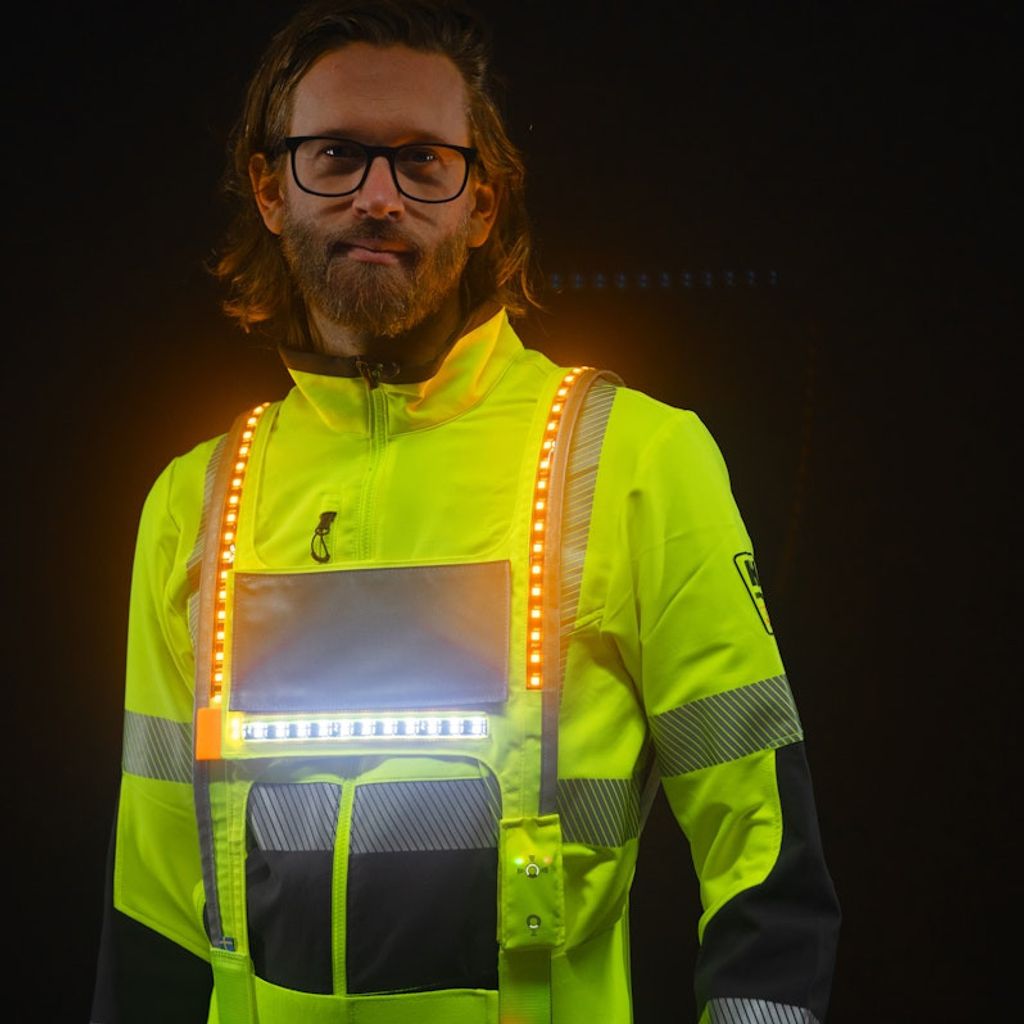Västen för dig som vistas eller arbetar i utsatta miljöer. LED-belysningen skapar bättre synlighet i dåligt väder, skymning, vid skymd sikt och nattarbete. Arbetsplatser är ofta upplysta samt avspärrningar och maskiner belysta – men inte de som arbetar. Arbetare som har aktiv belysning på sig förbättrar säkerheten och minskar risken för olyckor.